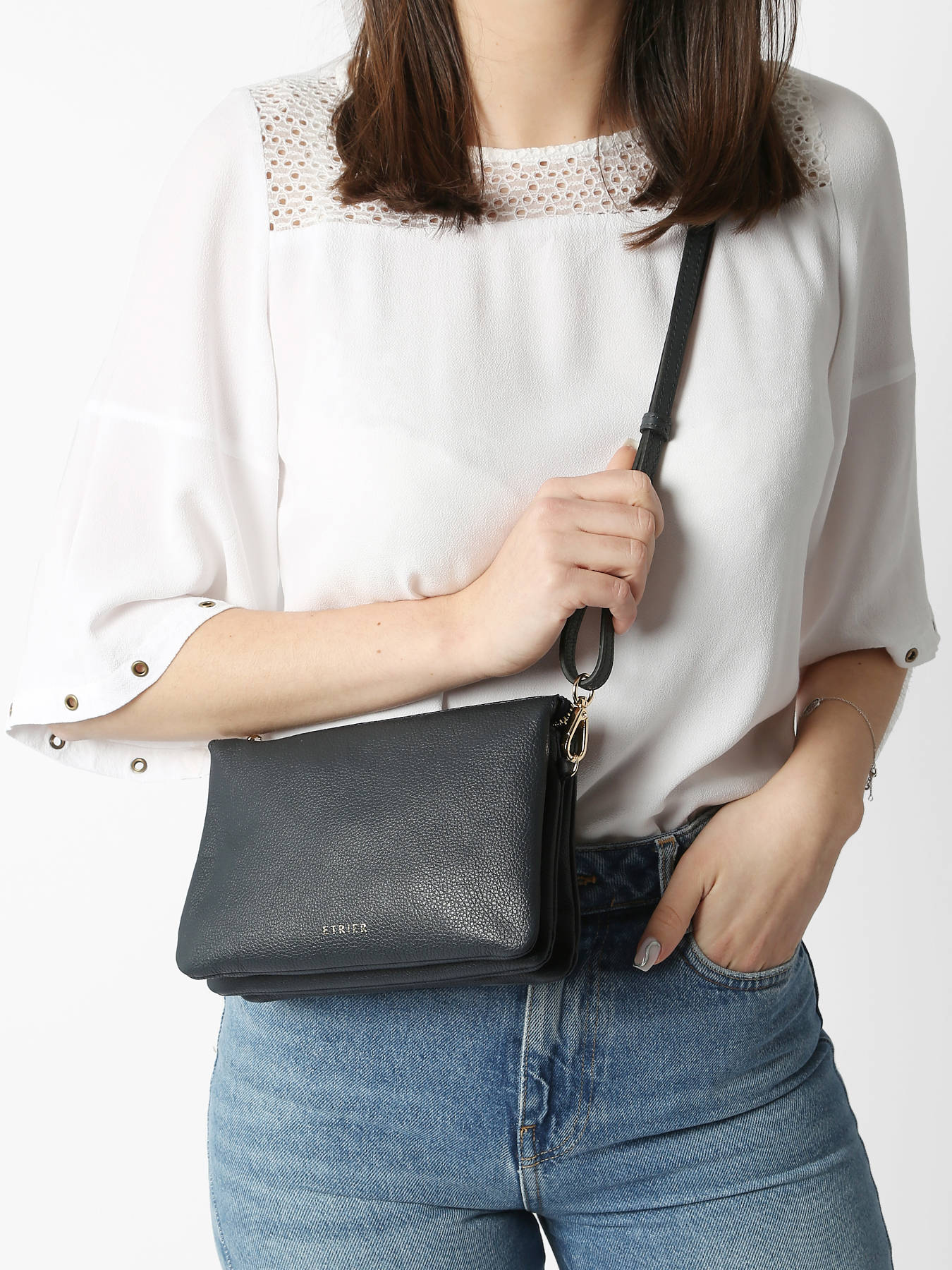 Dit veelzijdige crossbody tasje uit de Tradition collectie van Etrier kan je werkelijk met eender welke outfit combineren. Een dagje shoppen, een avondje uit of een formeler event: dit tasje is je perfecte compagnon! Gemaakt van soepel rundsleer met een gekorrelde textuur en afgewerkt met goudkleurige details voor een luxueus accent: de ideale combinatie! De tas ritst open, en onthult maar liefst drie gescheiden compartimenten, waar je jouw spulletjes overzichtelijk in kunt opbergen. Het lederen schouderriempje is verstelbaar, en kan gekruist of lang over de schouder gedragen worden.