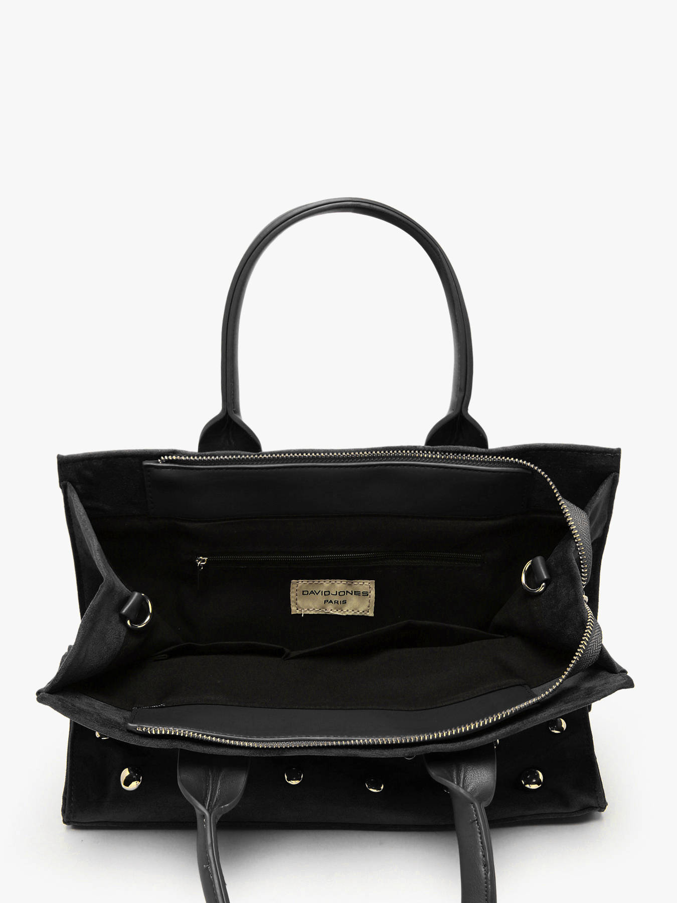De handtas A4 Stud van David Jones, gemaakt van duurzaam synthetisch materiaal, combineert moderne elegantie, functionaliteit en veelzijdigheid. De ritssluiting beveiligt je persoonlijke bezittingen en voegt een eigentijdse vleugje toe aan het strakke ontwerp. De twee zijvakken en het achtervak bieden snelle toegang tot je essentials, terwijl de verstelbare en afneembare cross body tas-band en het handvat van 13 cm dragen in de hand of als cross body tas mogelijk maken, afhankelijk van je behoeften. Het interieur bestaat uit een hoofdcompartiment, twee eenvoudige vakken en een vak met ritssluiting, wat optimale organisatie van je documenten, telefoon en andere essentials garandeert. Compact maar ruim genoeg voor A4-formaat onderscheidt deze tas zich door zijn moderne lijnen, verzorgde afwerking en lichtheid, en voegt hij een vleugje verfijning toe aan al je outfits. Veelzijdig en praktisch begeleidt hij je stedelijke dagen, zakelijke afspraken of uitstapjes, en combineert hij stijl, comfort en functionaliteit.