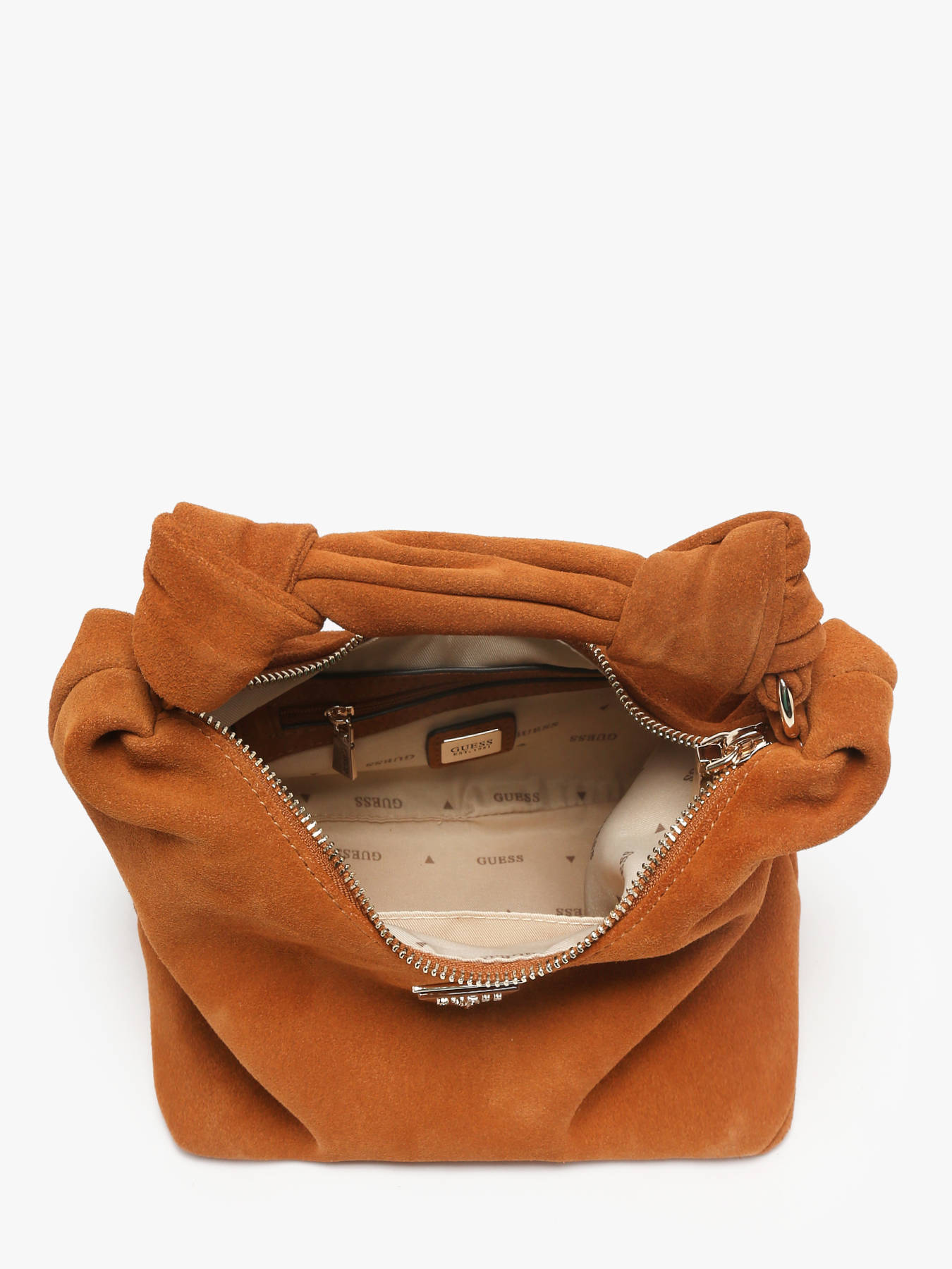 De Isotta-cross body tas van het merk GUESS overtuigt door zijn elegantie en de rijke uitstraling van het rundleer met suède-effect. De handtasjevorm geeft hem een verfijnde uitstraling, aangevuld met een ritssluiting die uw persoonlijke spullen veilig bewaart. Veelzijdig, kan hij met de hand worden gedragen dankzij het handvat van 13 cm of over de schouder met de afneembare schouderriem. Het interieur, zowel praktisch als doordacht, bevat een eenvoudig vak voor uw essentiële spullen en een ritsvak voor voorwerpen die veilig opgeborgen moeten worden. Chic en functioneel, is de ISOTTA-tas een ideale metgezel voor elke gelegenheid.