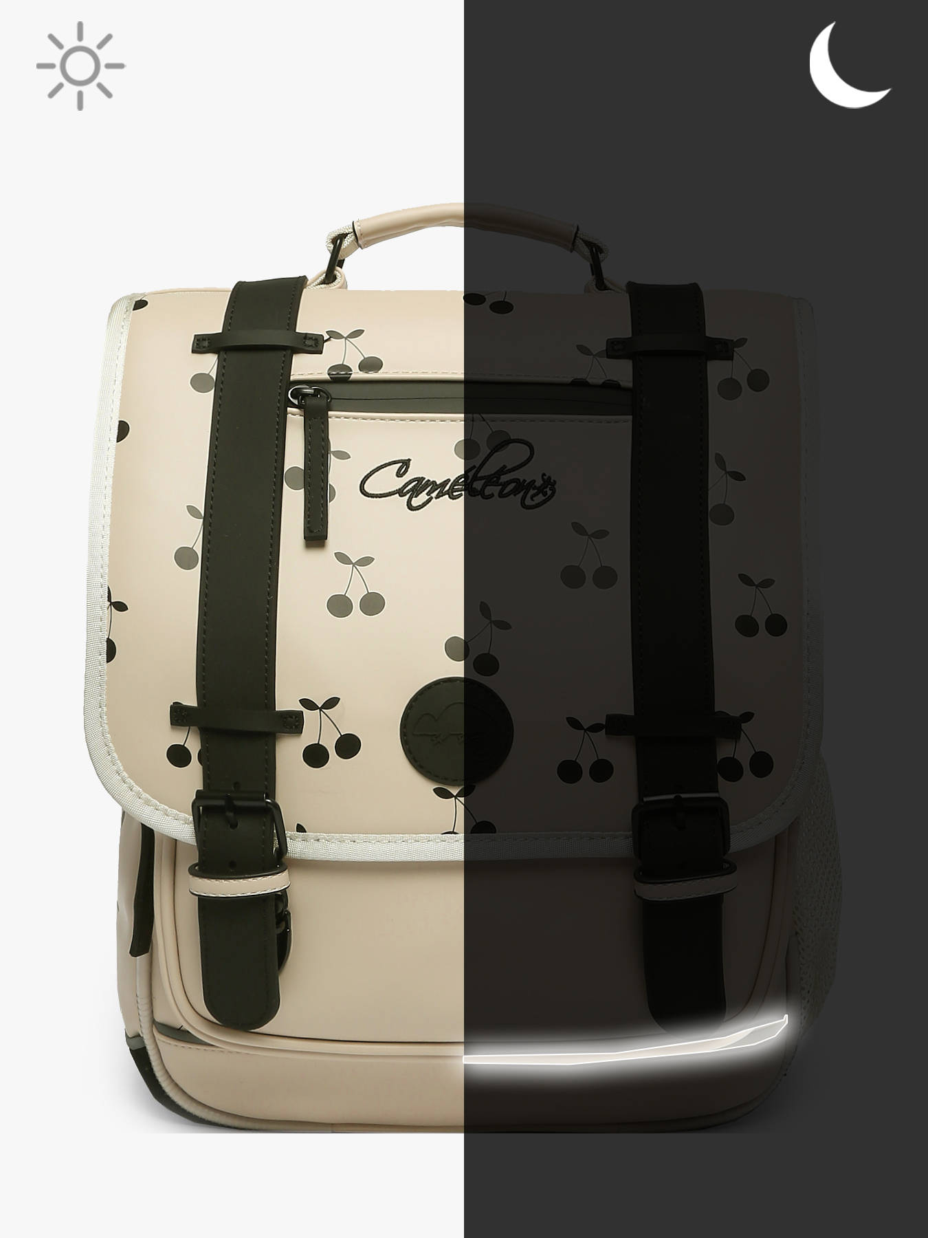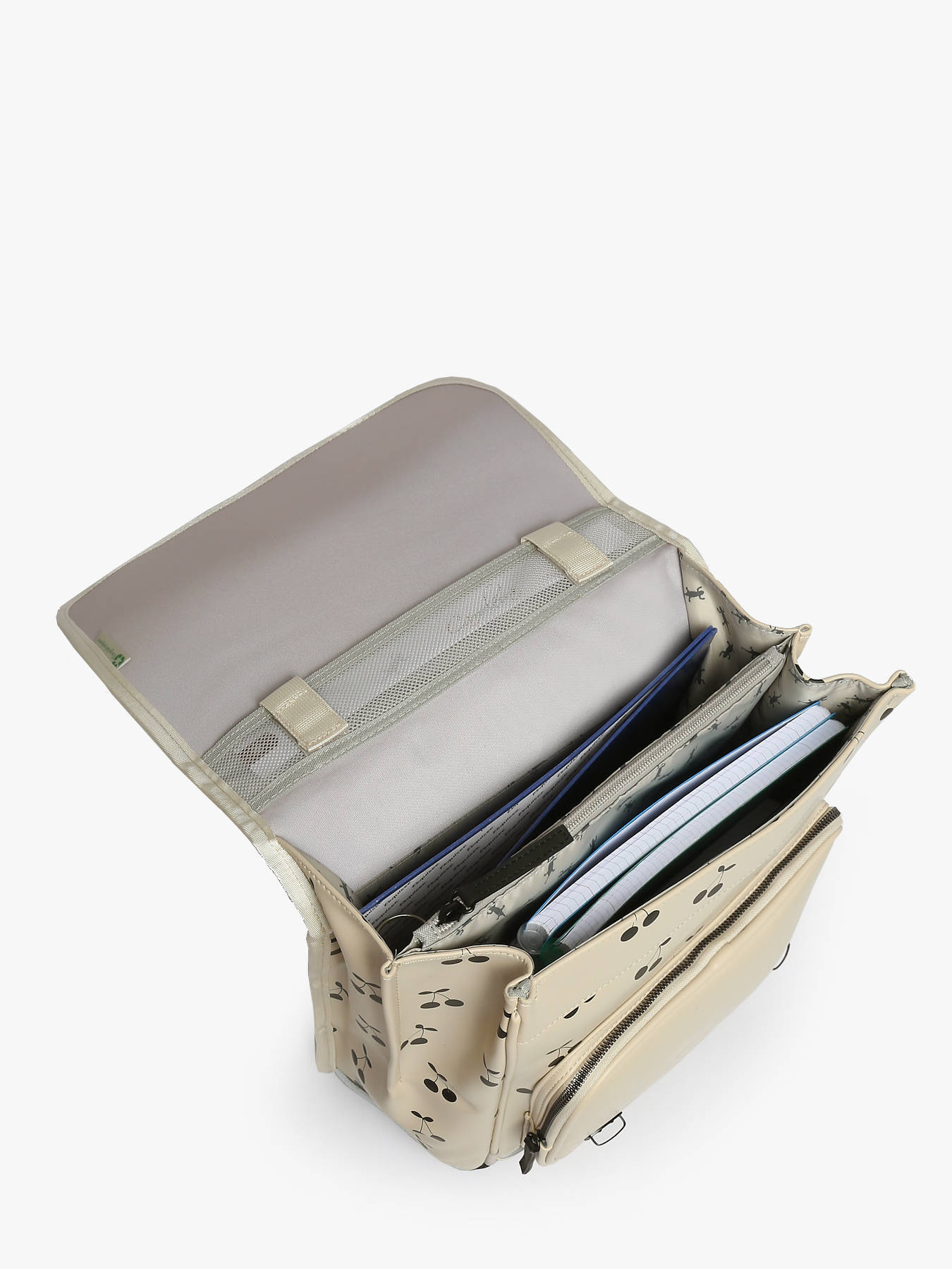 Deze rugzak uit de Vintage North collectie van Caméléon is ideaal voor de 1ste graad van de basisschool. Deze rugzak is gemaakt van waterafstotend gerecycleerd polyester, en beschikt over drie ruime opbergvakken. Deze kunnen schriften (24x32 cm) en schoolboeken van A4 formaat of groter bevatten. Daarnaast beschikt deze Caméléon-rugzak ook over een ruim voorvak met ritssluiting, en een handig mesh zijvakje om een waterfles in op te bergen. Onder de overslagflap bevindt zich een uniek opbergvakje voor een liniaal. Dankzij reflecterende strips kan uw kind zich veilig in het verkeer begeven. Tenslotte zijn de verstelbare schouderbanden en rugzijde gewatteerd, voor een optimaal draagcomfort.