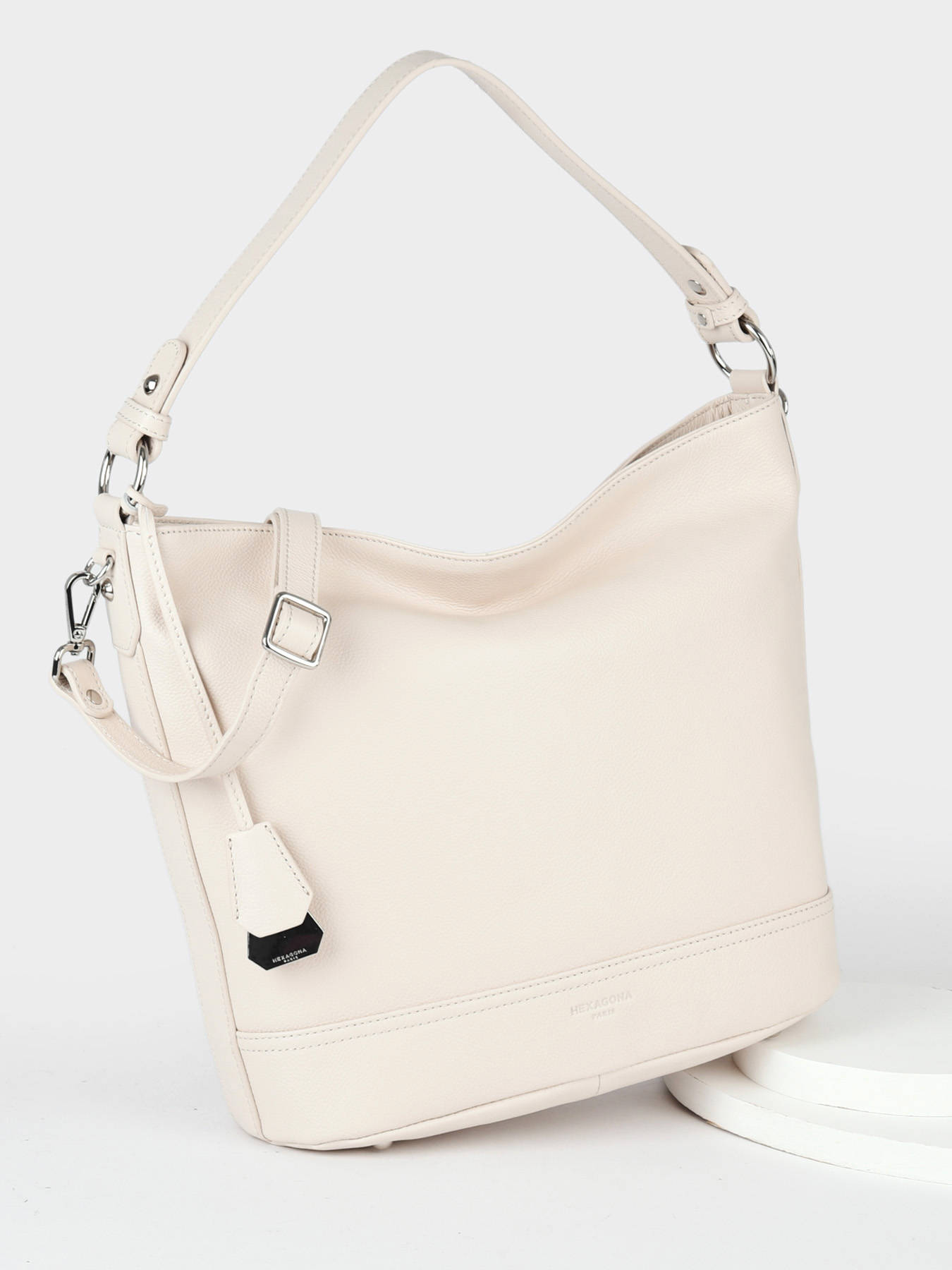 Een stijlvolle schoudertas uit de 'Pretty' collectie van Hexagona. Deze ruime shopper uit soepel rundsleer opent met rits, en is erg praktisch ingedeeld. Zo zijn er binnenin twee ruime opbergvakken voorzien, gescheiden door een plat middenvak met rits. Zo kunt u al uw dagelijkse spulletjes overzichtelijk opbergen! Draagt u dit model liever cross body? Dat kan, dankzij de lange, afneembare schouderriem!