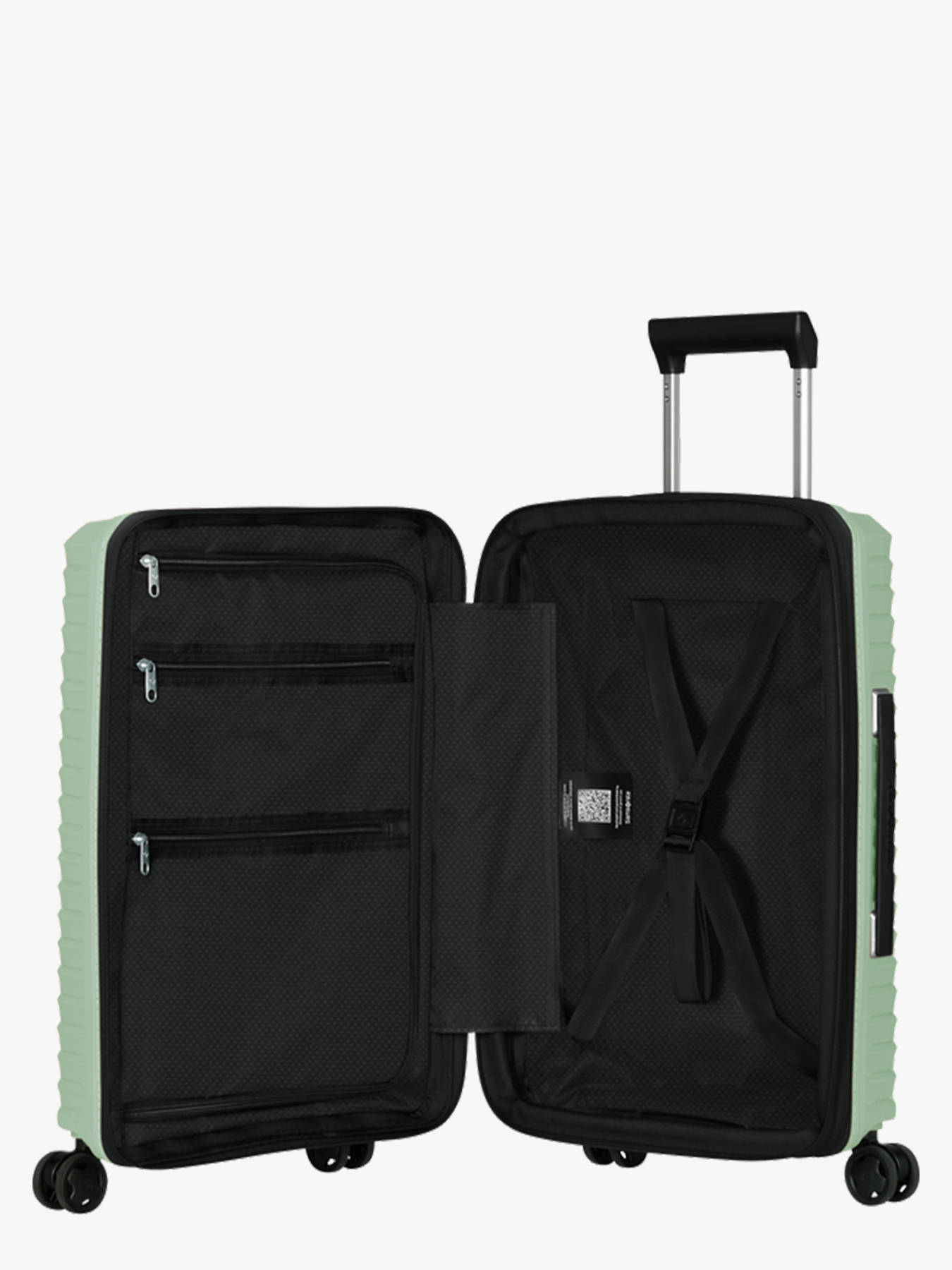 De Samsonite Upscape 55 cm handbagagekoffer combineert lichtgewicht, comfort en modern design en is ideaal voor korte trips en vliegreizen. Gemaakt van krasbestendig polypropyleen, weegt hij slechts 2,2 kg en biedt hij een uitbreidbare inhoud van 39 tot 45 liter, zodat hij zich aan jouw behoeften aanpast. De vier wielen met vering absorberen schokken en verminderen rolgeluiden, wat zorgt voor een soepele mobiliteit. Hij is uitgerust met een TSA-slot, een telescopische handgreep met meerdere standen, twee draaghandvatten en een geïntegreerd bagagelabel. Binnen vind je een bovencompartiment met een ritssluiting scheidingsplaat, een ondercompartiment met spanbanden en een afneembare, met de hand wasbare voering. Praktisch, functioneel en stijlvol, maakt de Upscape van je reizen echte comfortabele momenten.